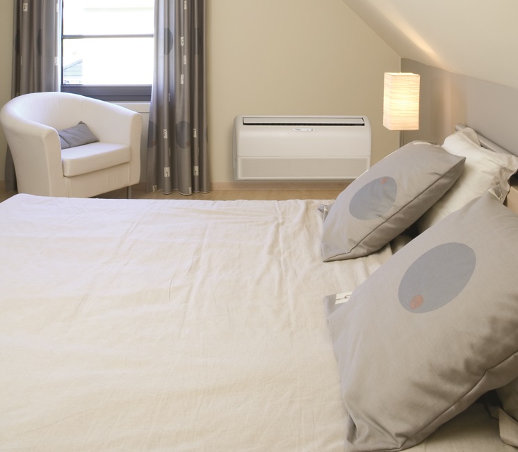 Kann an der Decke oder an einer niedrigen Wand montiert werden. Dank der geringen Höhe ist die Installation des Geräts auch unter einem Fenster möglich